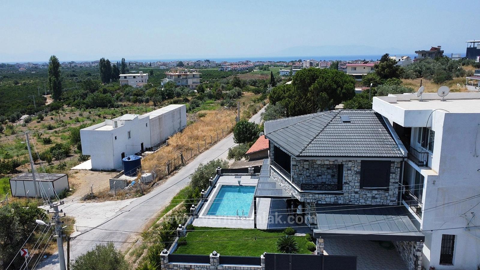 Отдельно стоящая вилла с бассейном и садом на продажу у моря в Гюмюльдуре